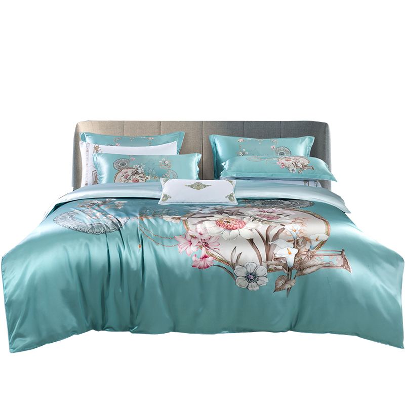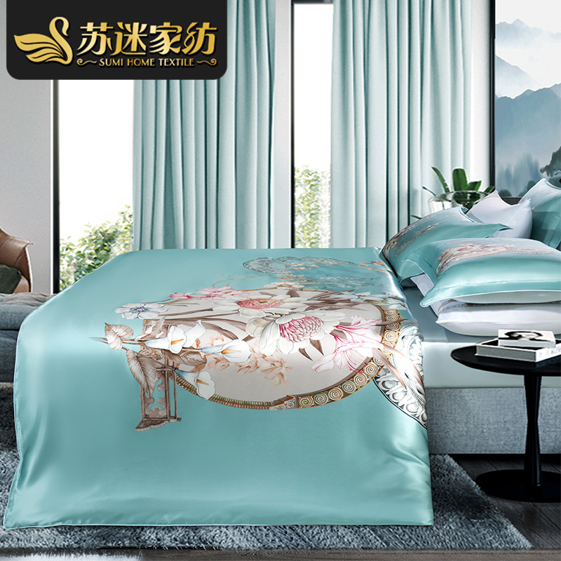 100% mulberry silk four-piece bedding light luxury heavyweight silk quilt cover new Chinese style bedding