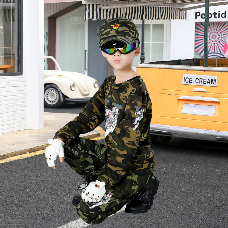 Boys spring and autumn long sleeve camouflage suit children's police uniform large military uniform children's special forces military training performance tide clothes