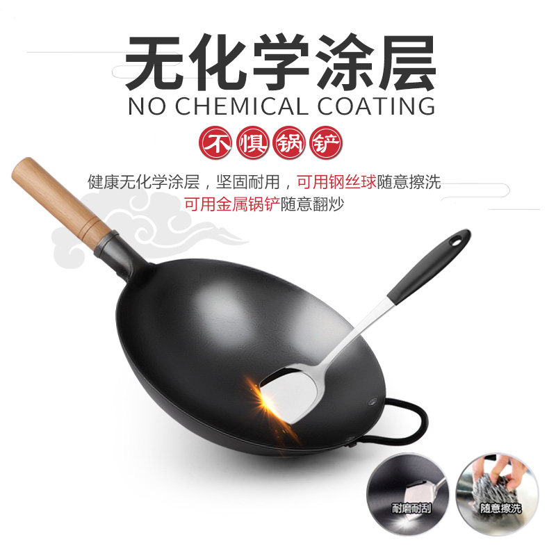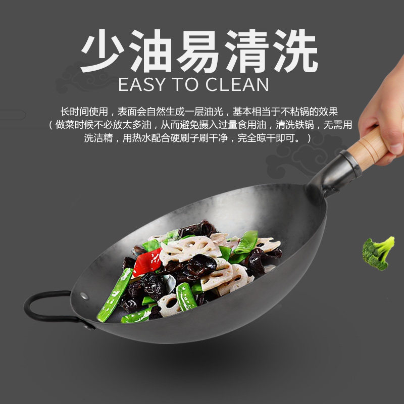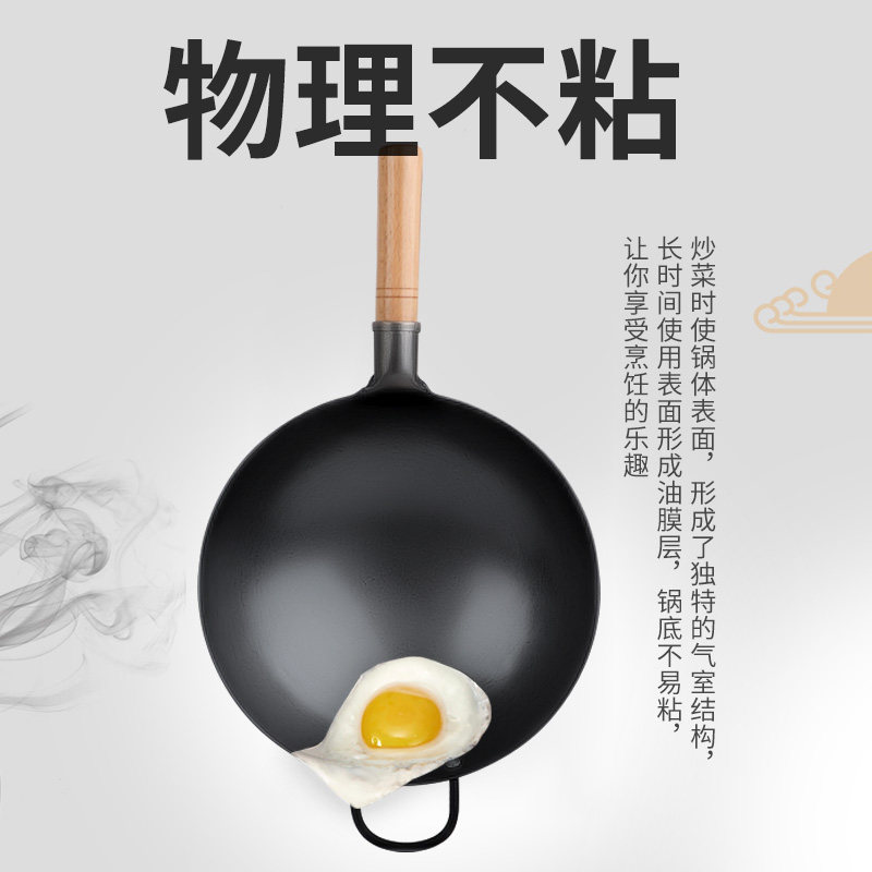 Handmade Iron Pan Official Flagship Stir-fry Pan Old Iron Pan Home without coating Non-stick Pan Gas Oven Special-Taobao