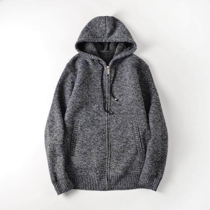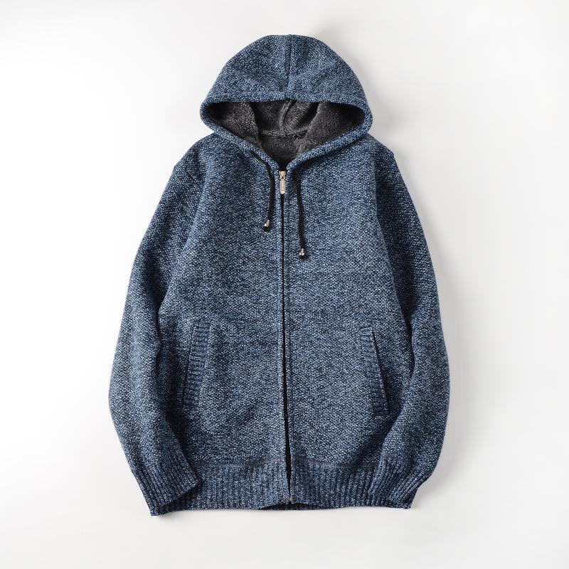 Thick Real Warm Foreign Trade Export Men's Wear Tail Single Autumn Winter Plus Suede Thickened Hat Knit Cardiovert Sweater Jacket
