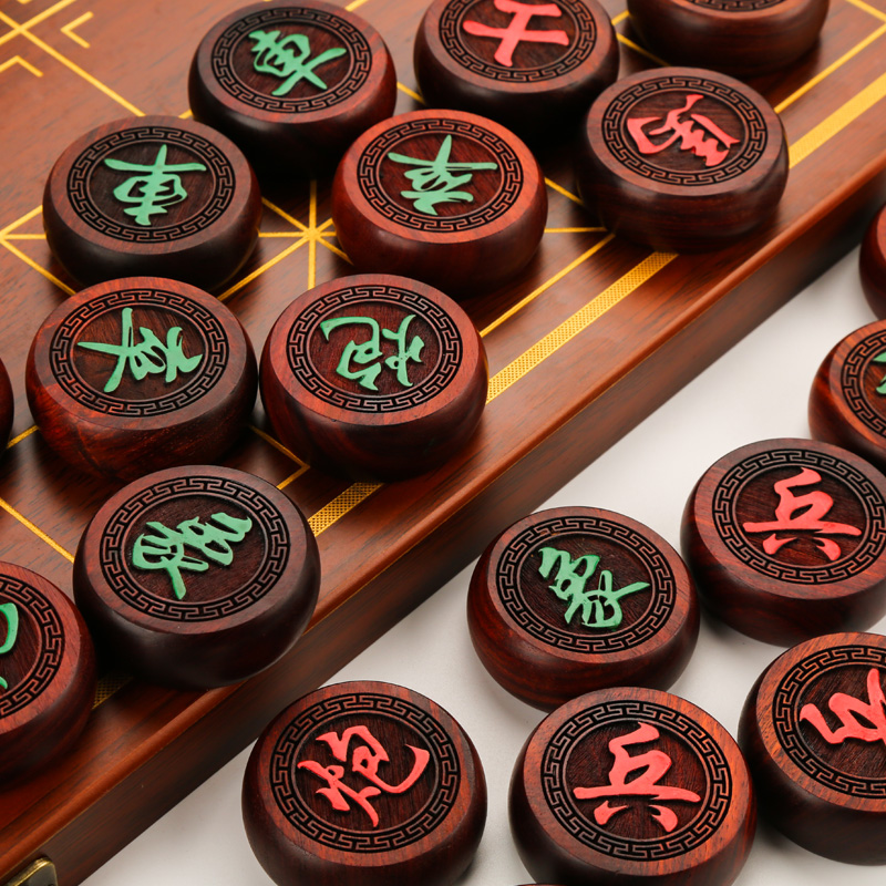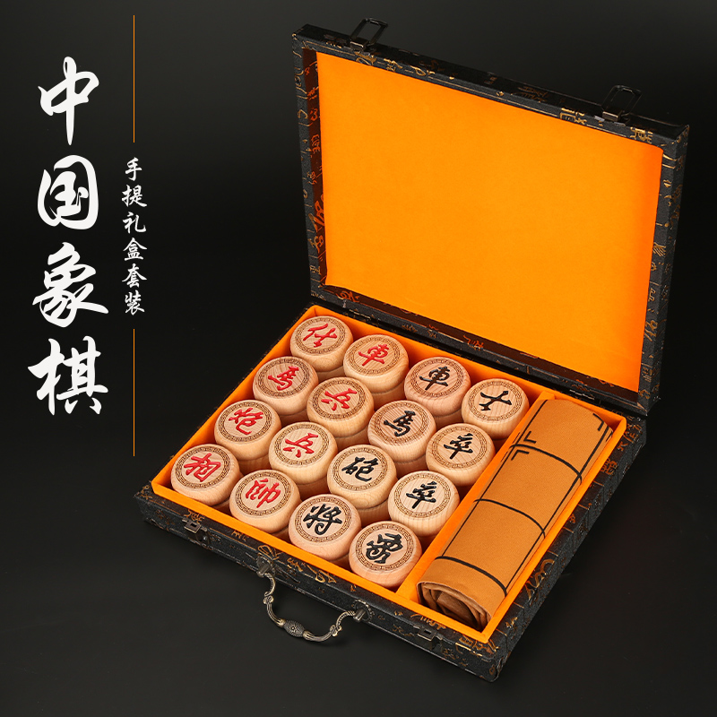 Chinese chess set Ebony sandalwood Wood chess portable chessboard large adult wooden chessboard to send elders