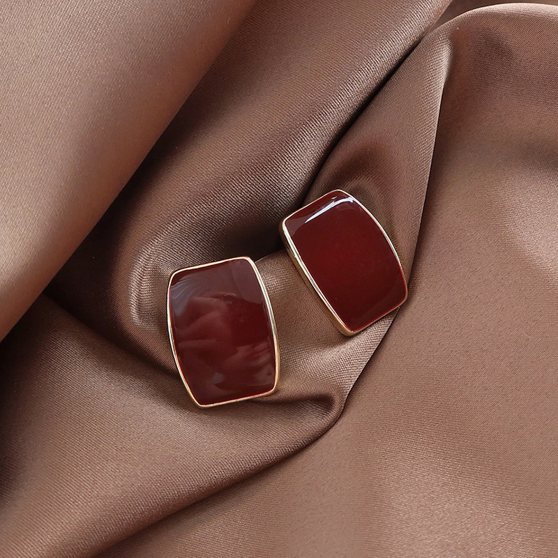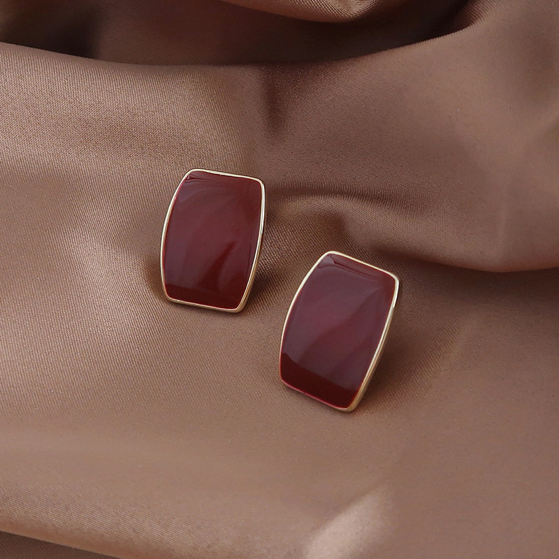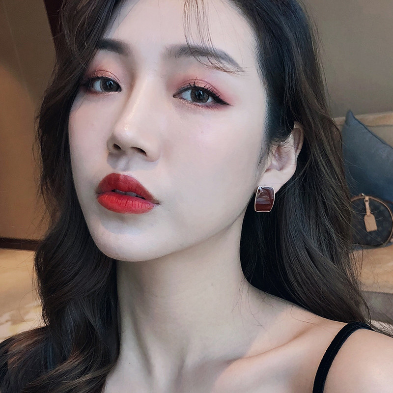Cold wind ear nails female pure silver anti - allergic temperament earrings 2023 new tide wine red ear decoration simple personality
