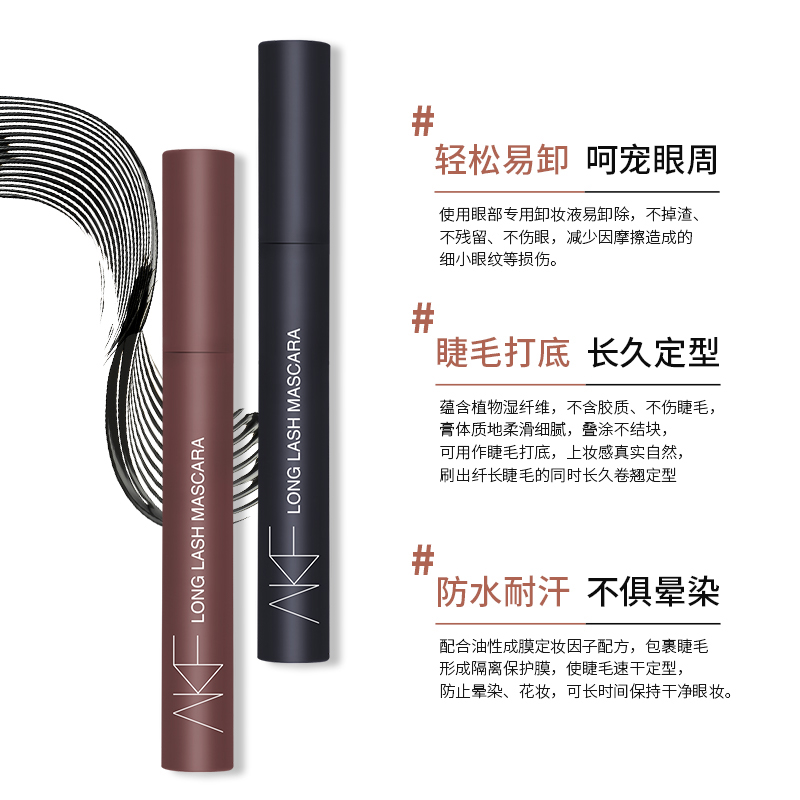 AKF mascara Waterproof Long curl Non-smudging Long-lasting Ultra-fine brush head extended encryption Extra long brown color