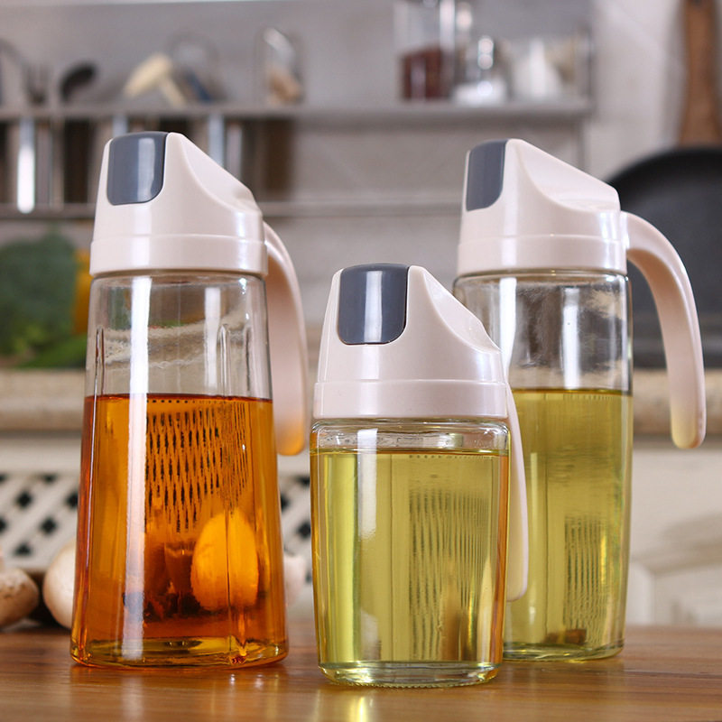 Japan-style Glass Oil Pot in oil pouring oil anti-leakage kitchen Home Automatic opening and closing large capacity Soy Sauce Vinegar Oil Bottle