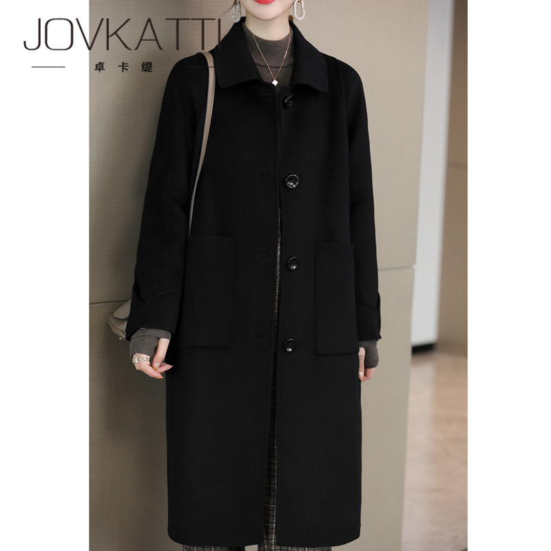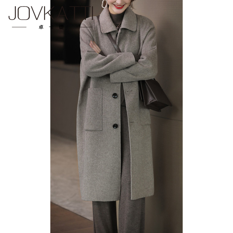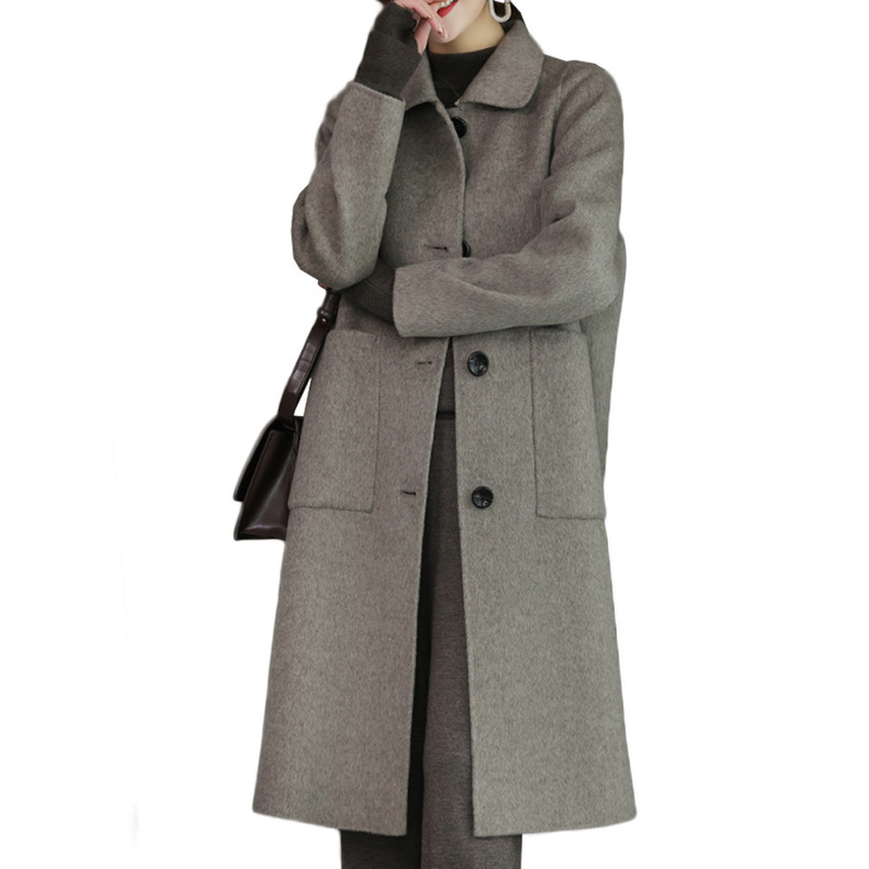High-end light luxury temperament wool double-sided woolen coat 2022 winter long loose and thin over-the-knee cashmere coat women