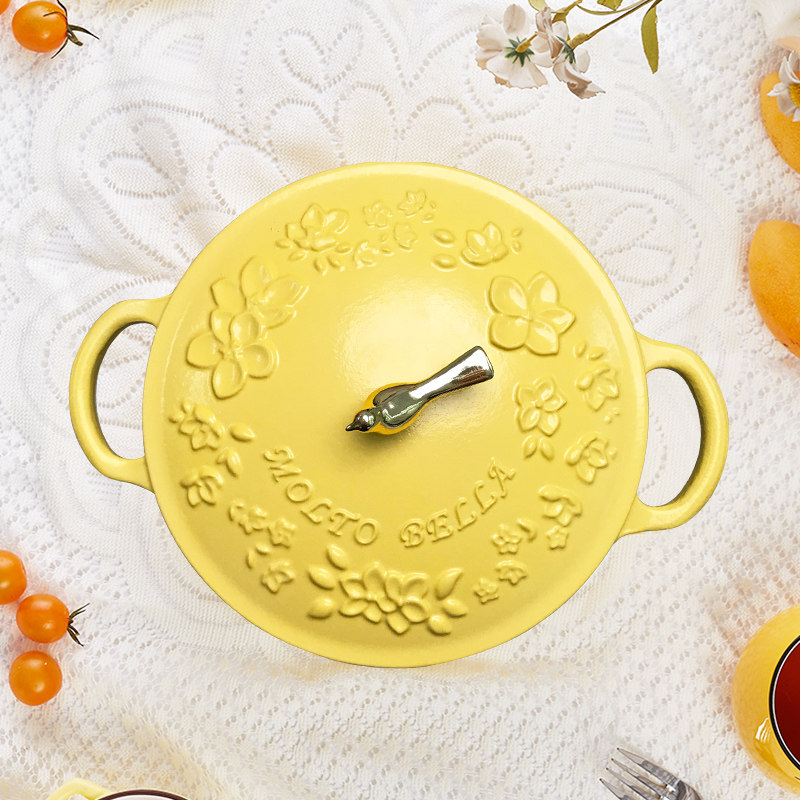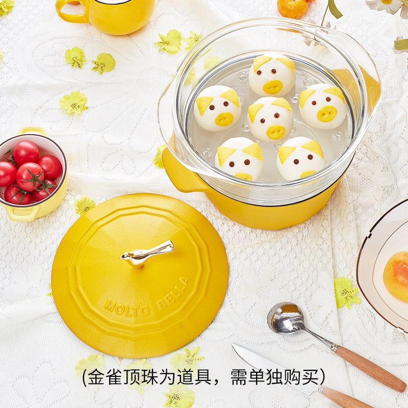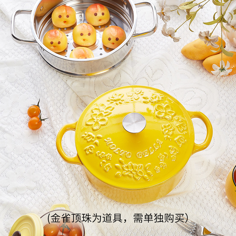 Bella yellow enamel pot cast iron stew pot soup pot steamer with cage drawer 21cm household stew pot enamel pot 3.0L