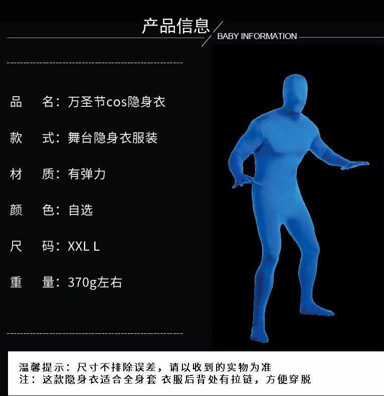Jumpsuit keying Colorful black clothing Men and women's clothing performance jumpsuit COS Halloween invisible clothes Green screen