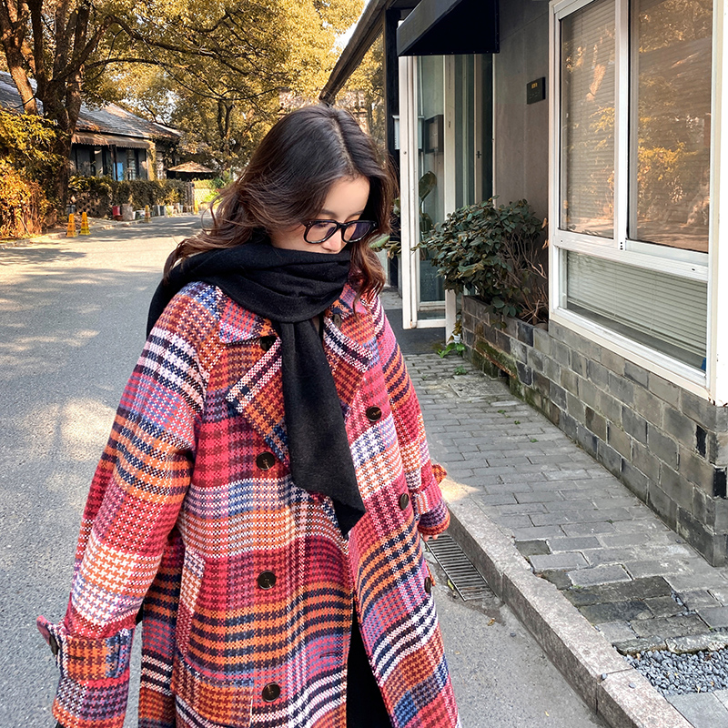 Lecea Alice plaid woolen coat women's 2022 autumn and winter new temperament British style fashion cashmere coat