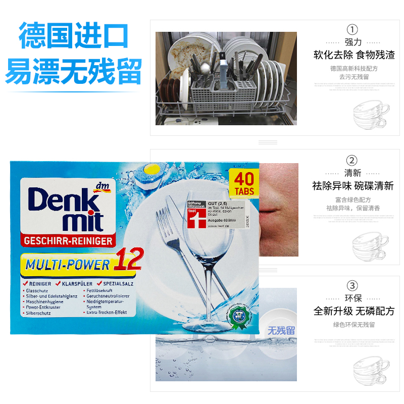 German import DM dishwasher block 40 grain without softening salt light brightener multi-effect all-in-one detergent detergent