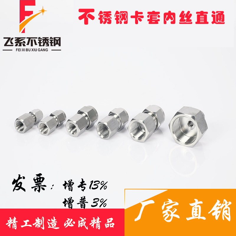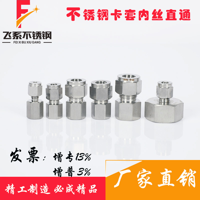 304 stainless steel cutting sleeve joint straight through inner wire internal thread copper pipe joint stainless steel double cutting sleeve type joint