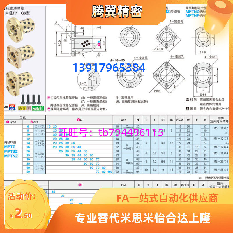 MPTZ -8 oil-free bush OFR01-D12 D16 D-D-L20 L25 L35 L35 bearing