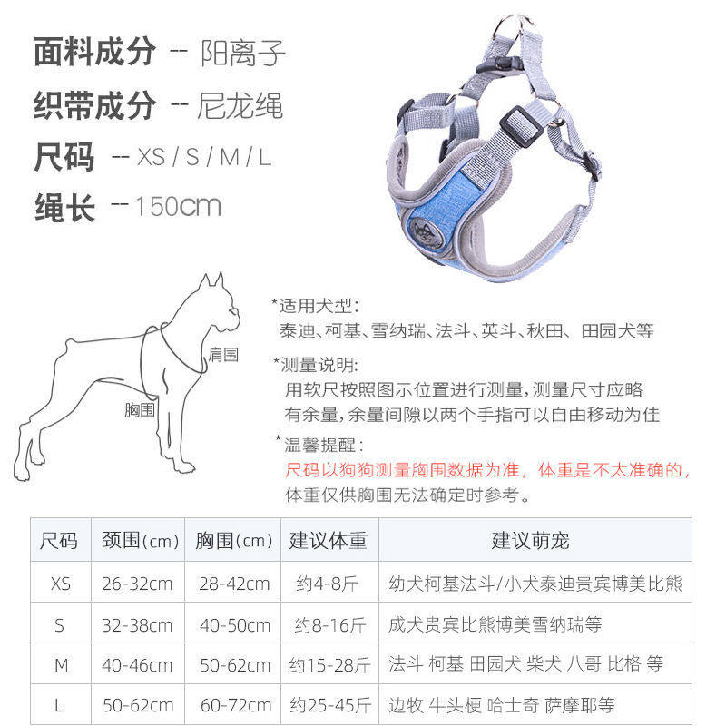 XS chest circumference 28-42cm about 4-8 grams of S chest circumference 40-50cm about 8-16 kilograms of M chest circumference 50-62cm about 15 -28 grams of L chest circumference 60 -