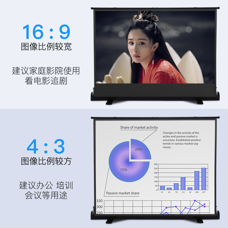 China Podcast Palm Ground Pull Curtain Cloth Projection Curtain Cloth Anti-Light 80100120 Inch Home Desktop Free of punch portable manual outdoor pull-out curtain cloth bracket floor mobile hand screen