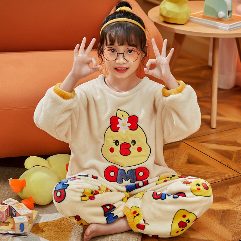 Autumn Winter Teen Pyjamas Girls Thickened and Flannel Suede Middle School Children Coral Suede Girls Student Home Clothes