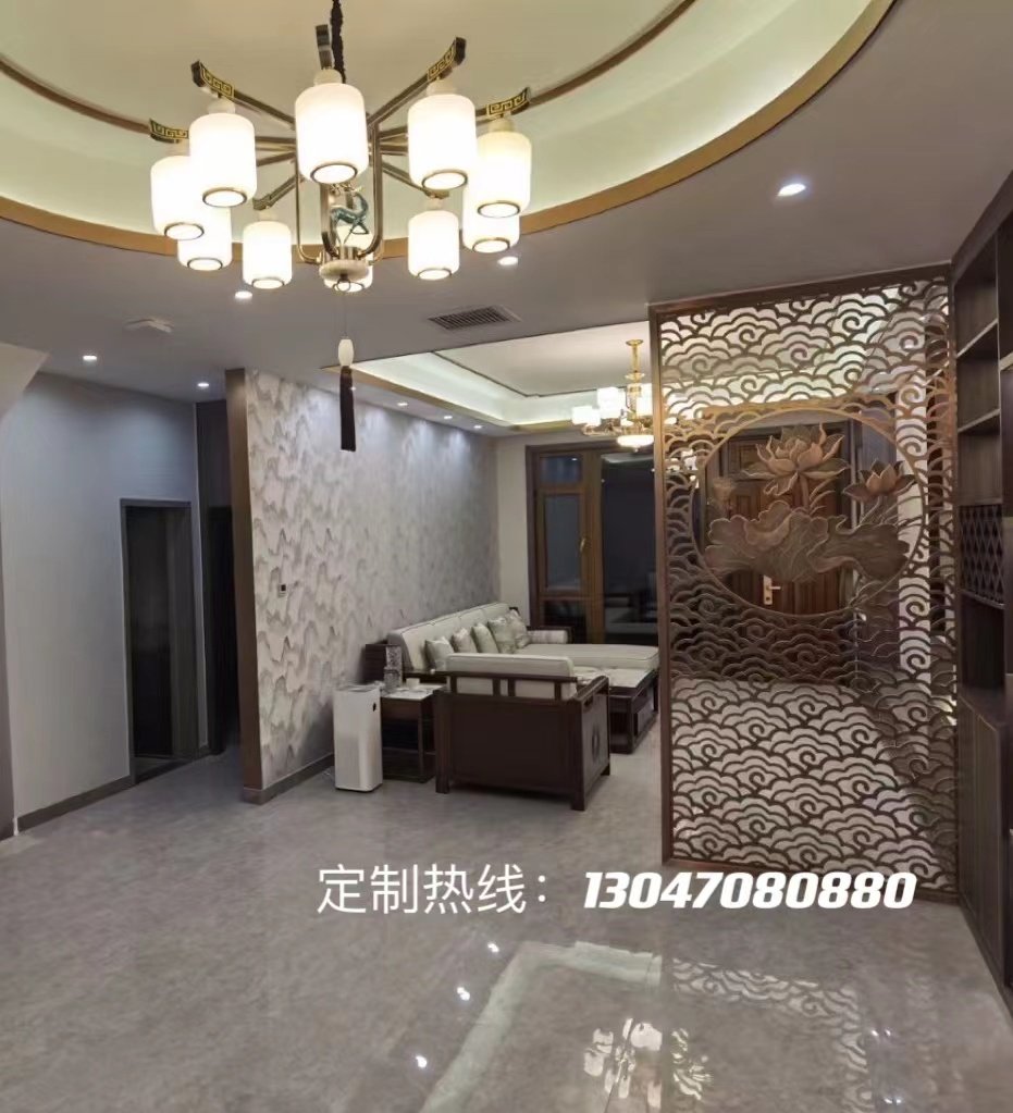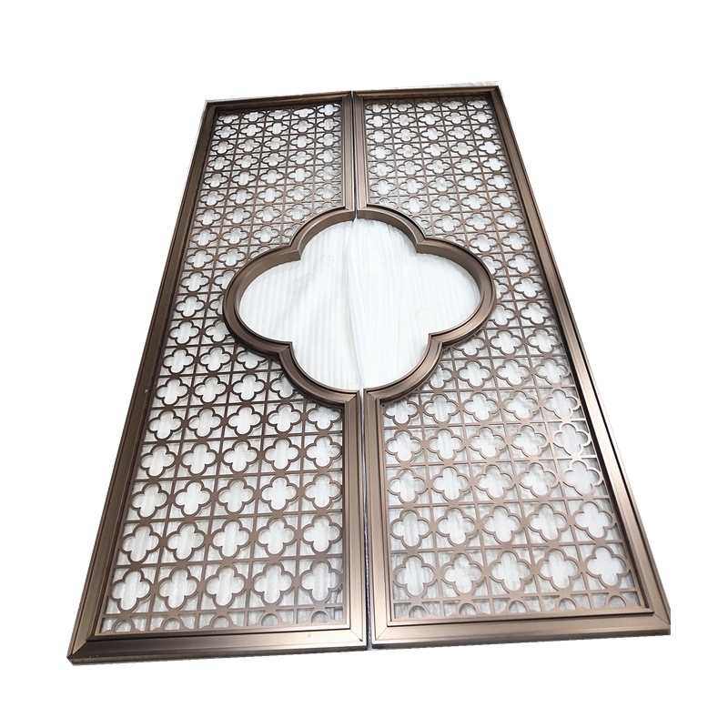New Chinese style partition solid aluminum carving stainless steel living room hotel simple Nordic high-end custom rose gold screen