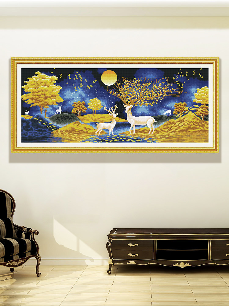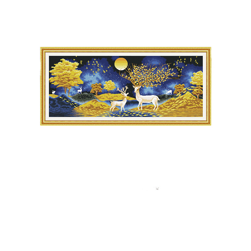 KS Cross Embroidered Gold Foru Caio Style Elk Deer Creativity 100 Hitch A Fortune Scenery Living Room Book House Itself Embroidered