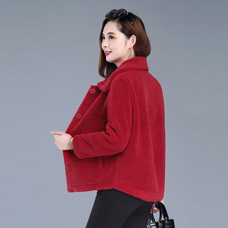 Mother's autumn and winter imitation mink velvet jacket middle-aged women's grain velvet cardigan clothes middle-aged and elderly women's warm jacket
