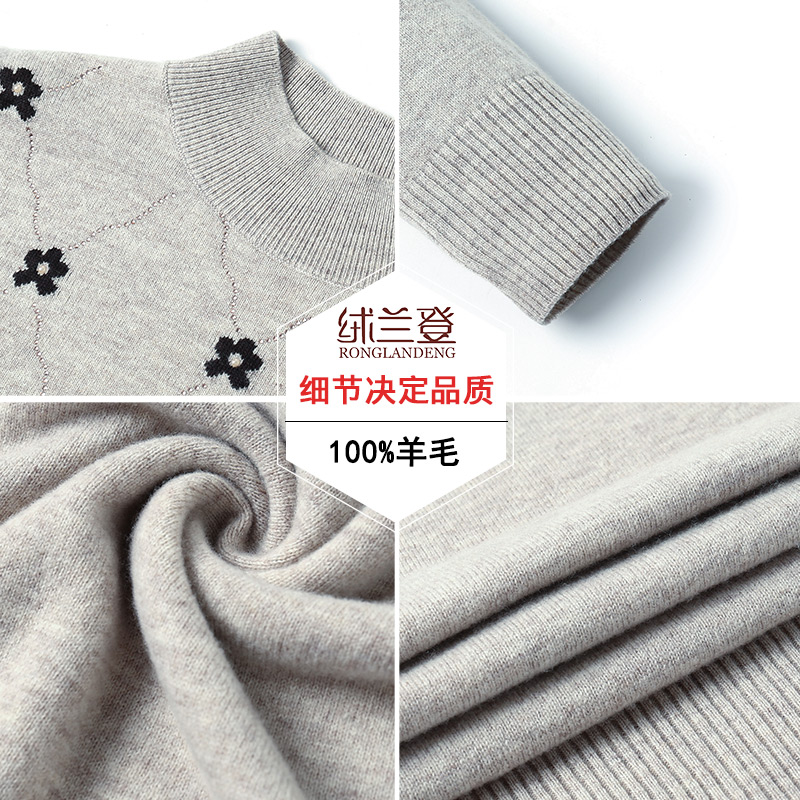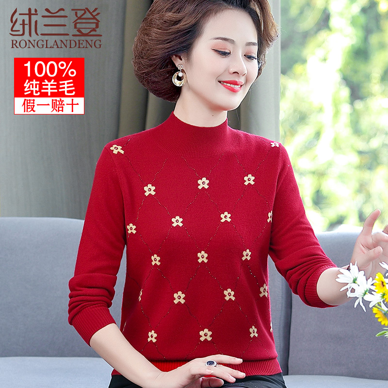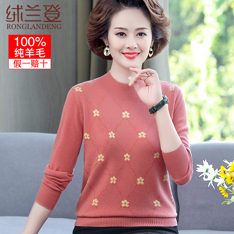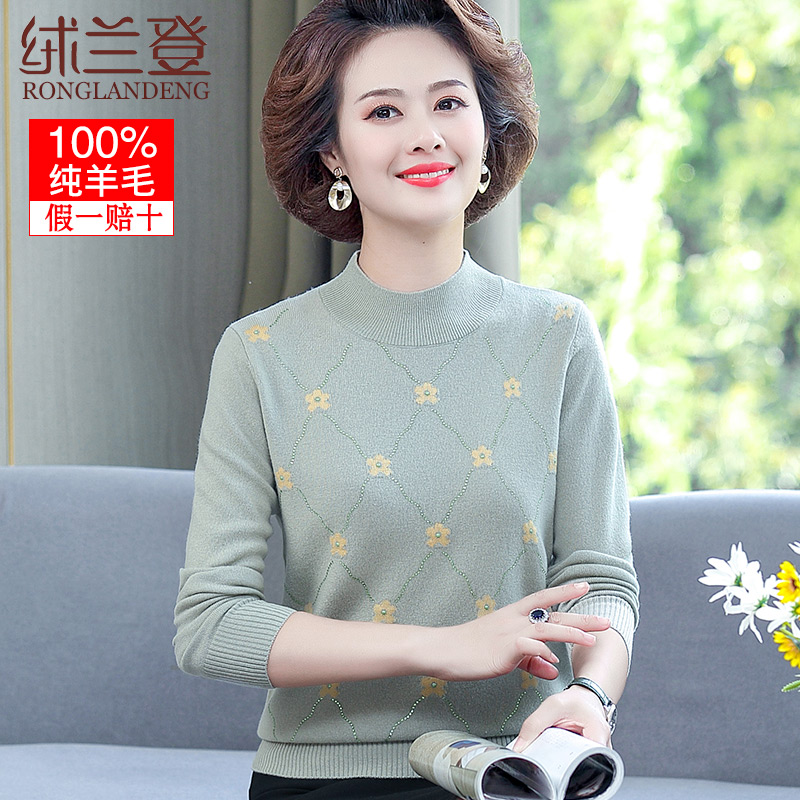 Mom cardigan women's 100 pure wool knitted base shirt thin middle-aged and elderly autumn and winter sweater short section