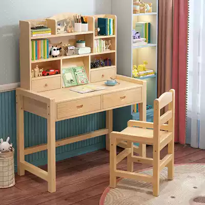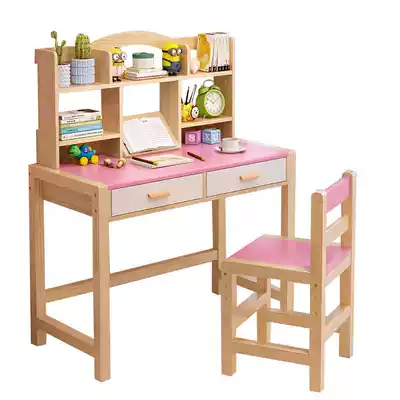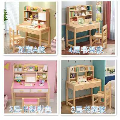 Children's study desk desk can be lifted solid wood desk chair set Primary school students home simple desk homework desk