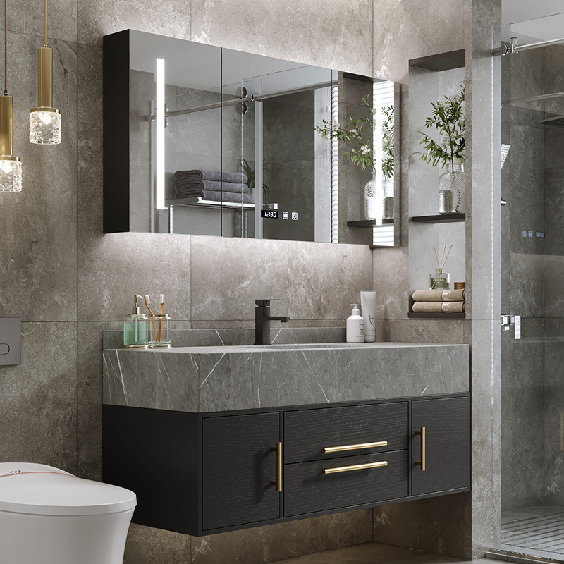Toilet rock slab integrated bathroom cabinet combination set sink wash mirror light luxury smart bathroom wash basin