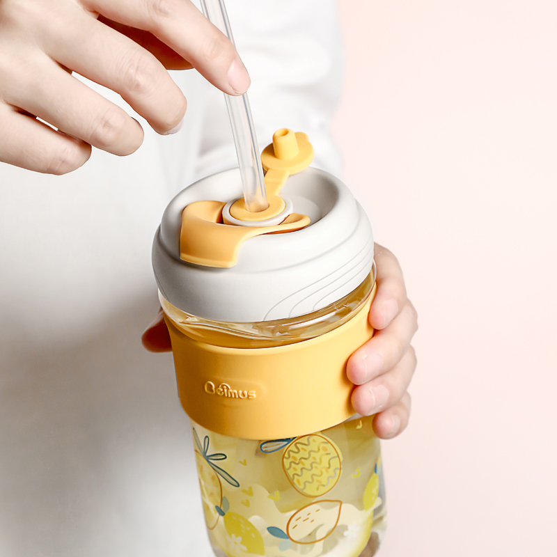 Adult glass straw cup home portable with lid scale milk tea soy milk cup coffee cup pregnant woman water cup woman