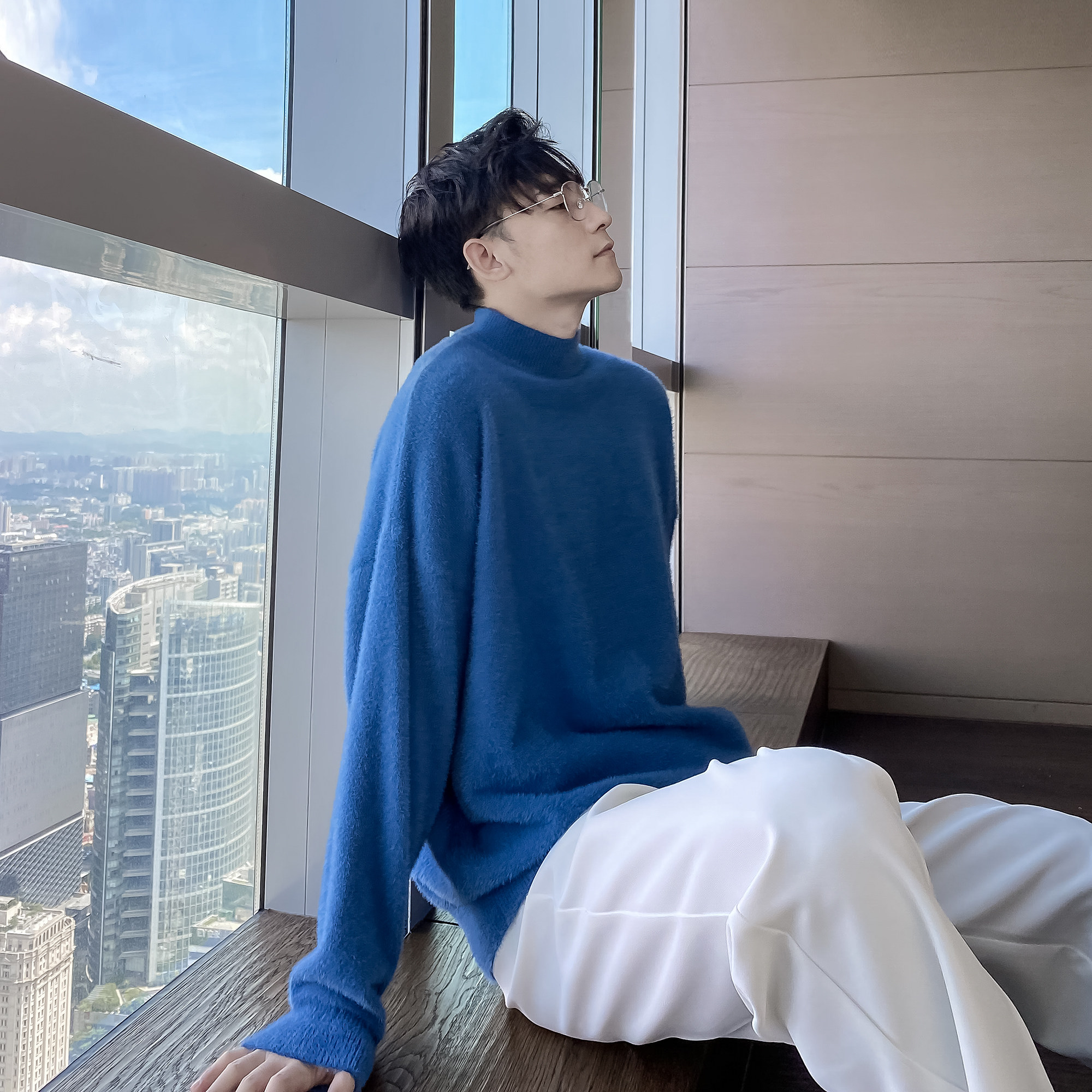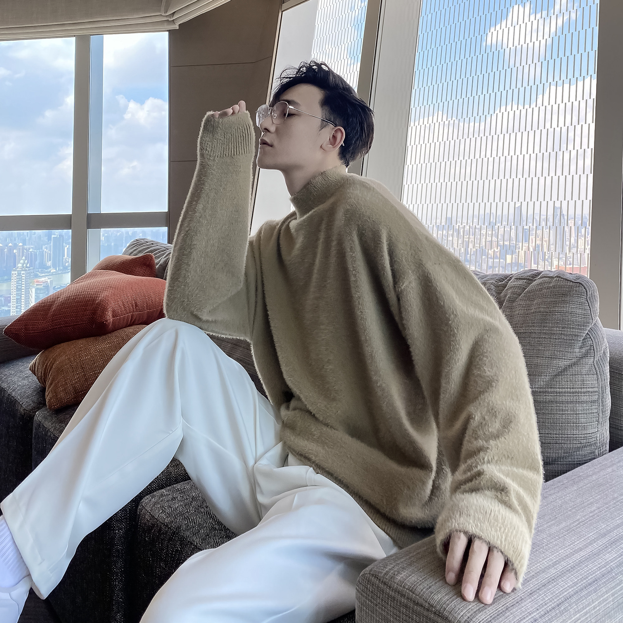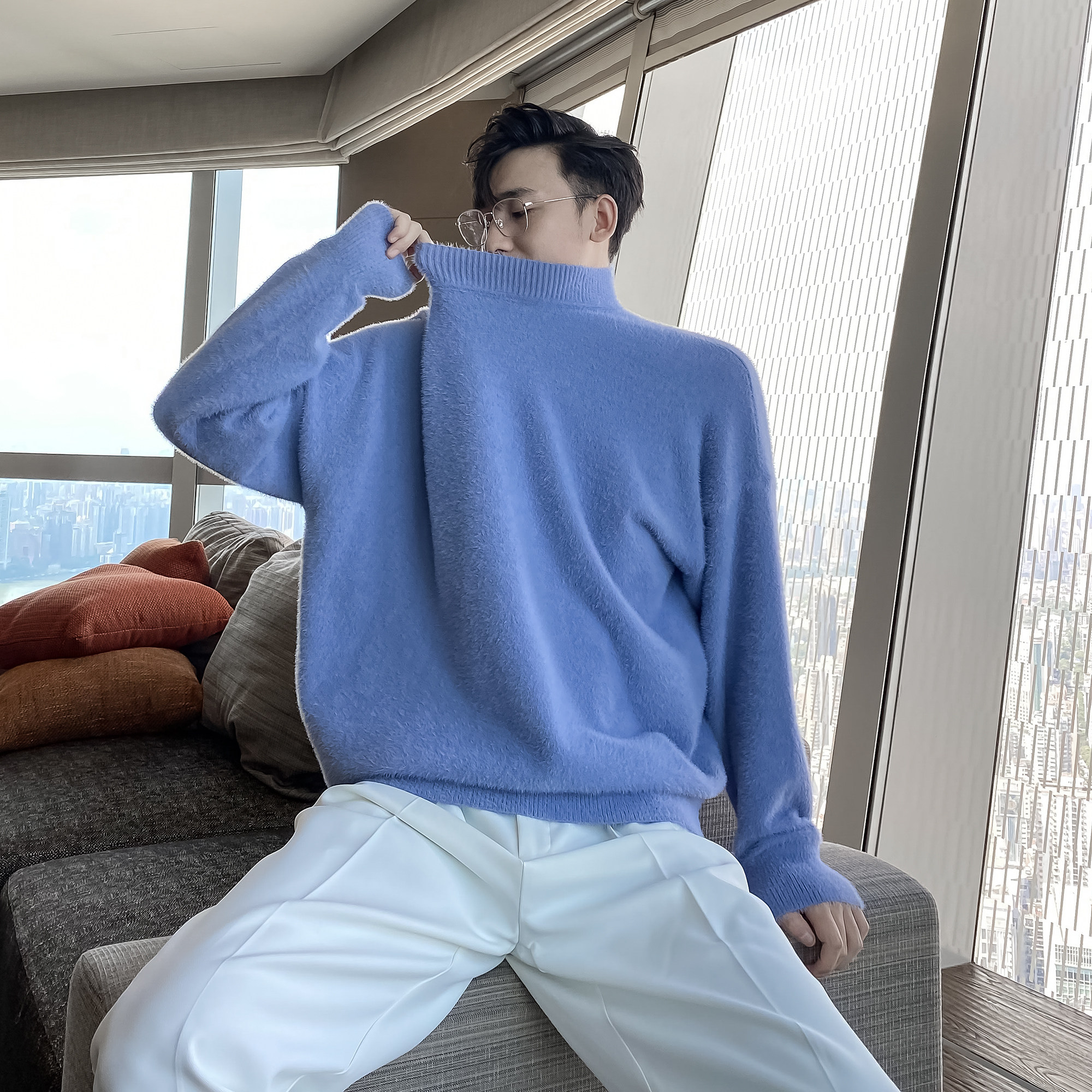 (VERA men) South Korea ins autumn and winter leisure half-high-collar base knitted sweater loose lazy wind tide man