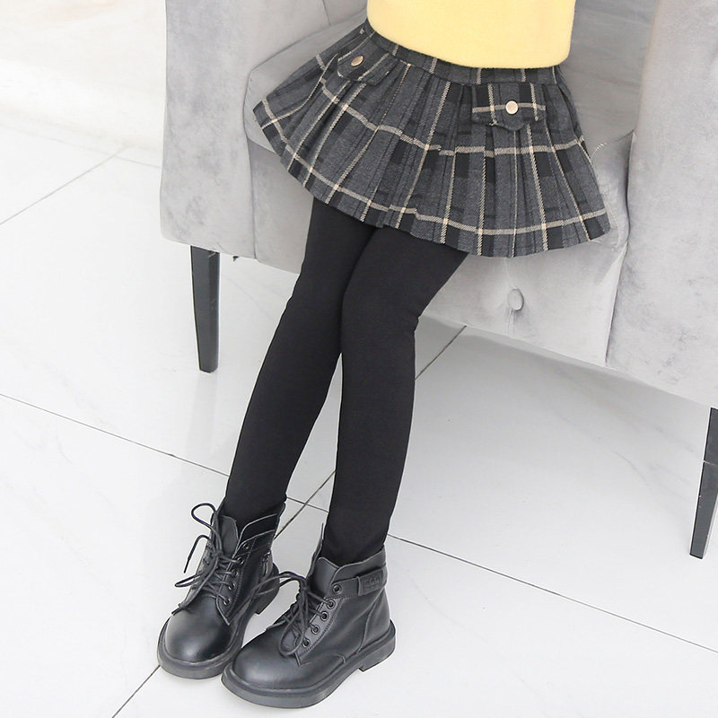 Girls leggings spring and autumn outside wearing skirts fake two pieces of children girls culottes autumn winter plus velvet big children pants spring dress