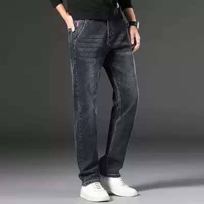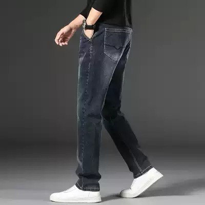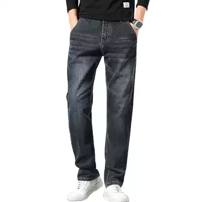 Summer thin high-end jeans men's straight loose casual pants Dark retro washed men's pants