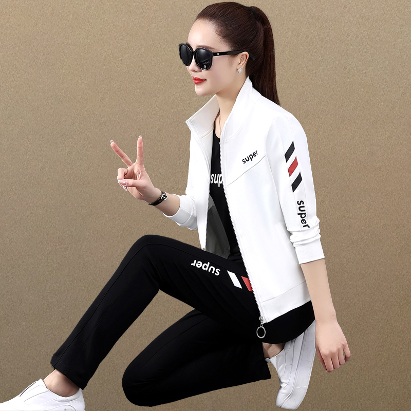 Sports Suit Women's Spring Autumn Season 2023 New Fashion Big Code Foreign Air Long Sleeve Casual Running Suit Clothing Three Sets