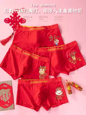 Red Hongyun underwear men's four-corner pants pure cotton four-corner pants are the year of the cow's good luck suit red socks