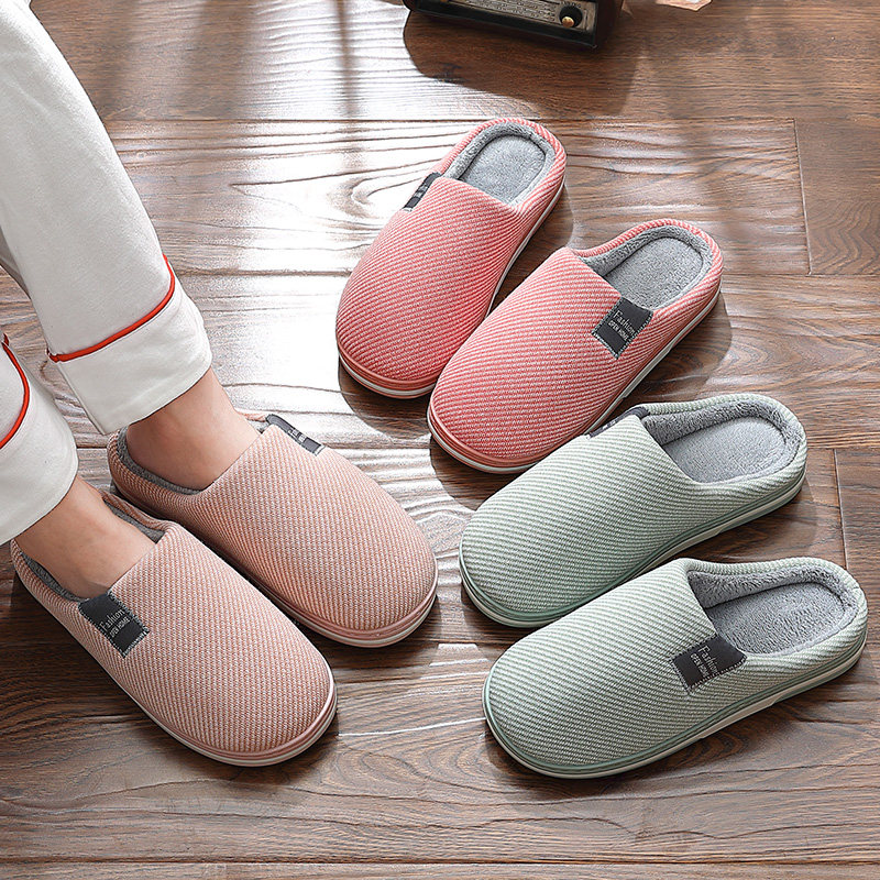 Japanese-style cotton slippers autumn and winter home men and women thick-soled warm non-slip soft-soled couple indoor semi-package heel home shoes