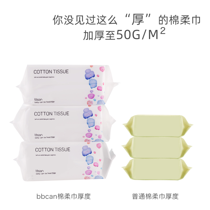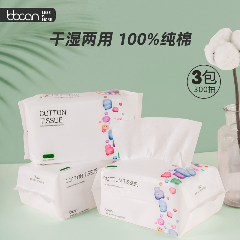 BBCAN baby cotton soft towel Wet and dry dual-use non-wet tissue Pure cotton thickened newborn baby special 100*3 packs