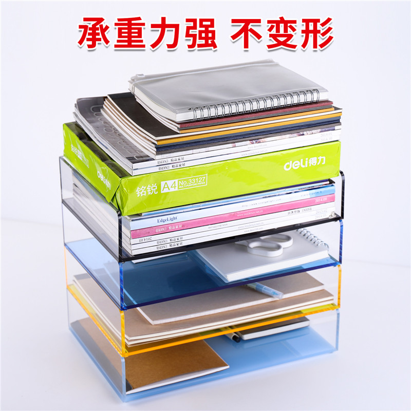 Sanrui color desktop acrylic file rack Transparent file tray File tray High color value thickened combination book stand Single-layer two-color A4 single grid office data storage box file bar