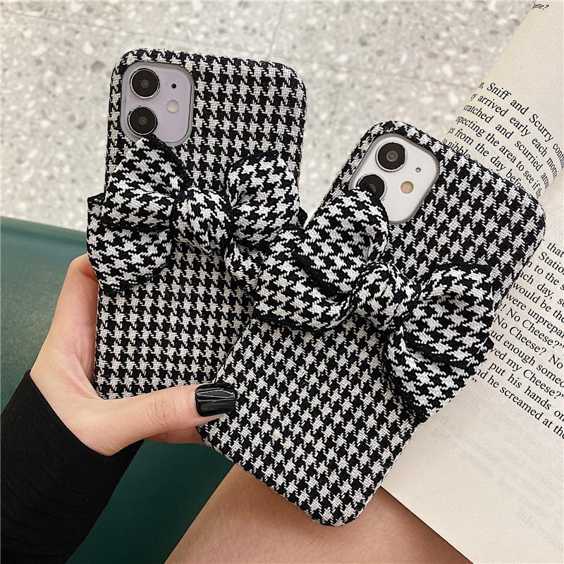 Winter Birds checkered butterfly knot applicable x27vivoX60 mobile phone protective shell x50pro plush s10 adolescent girl's section x23 plush x30 new S9 net red y3 anti-fall s7