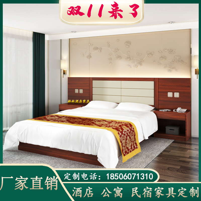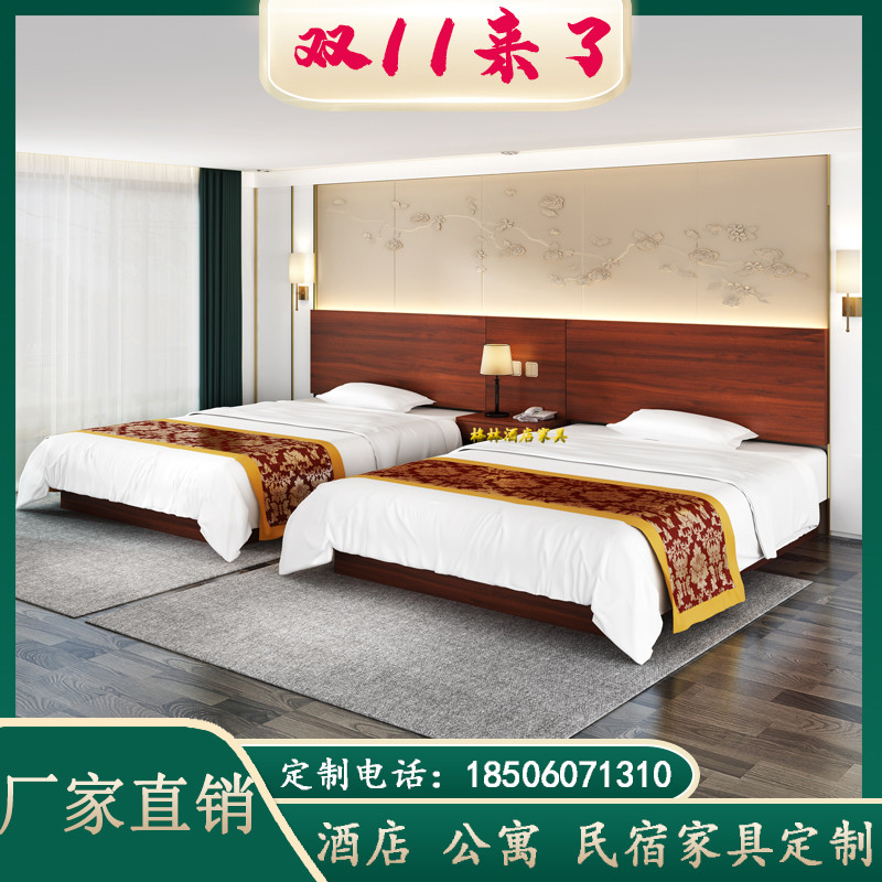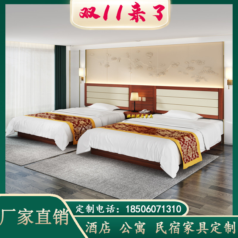 Hotel Bed Customization Hotel Furniture Standard Room Full Homestay Apartment Bed Hotel Guest Room Bed Double Bed Hotel Bed Full Set