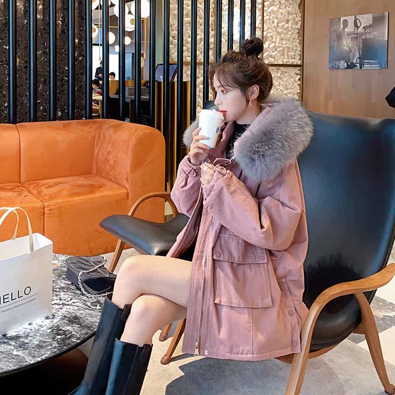 Pregnant women's winter cotton jacket female Korean version loose small pregnant mother cover belly cotton wool inner bile hooded pie overcome jacket