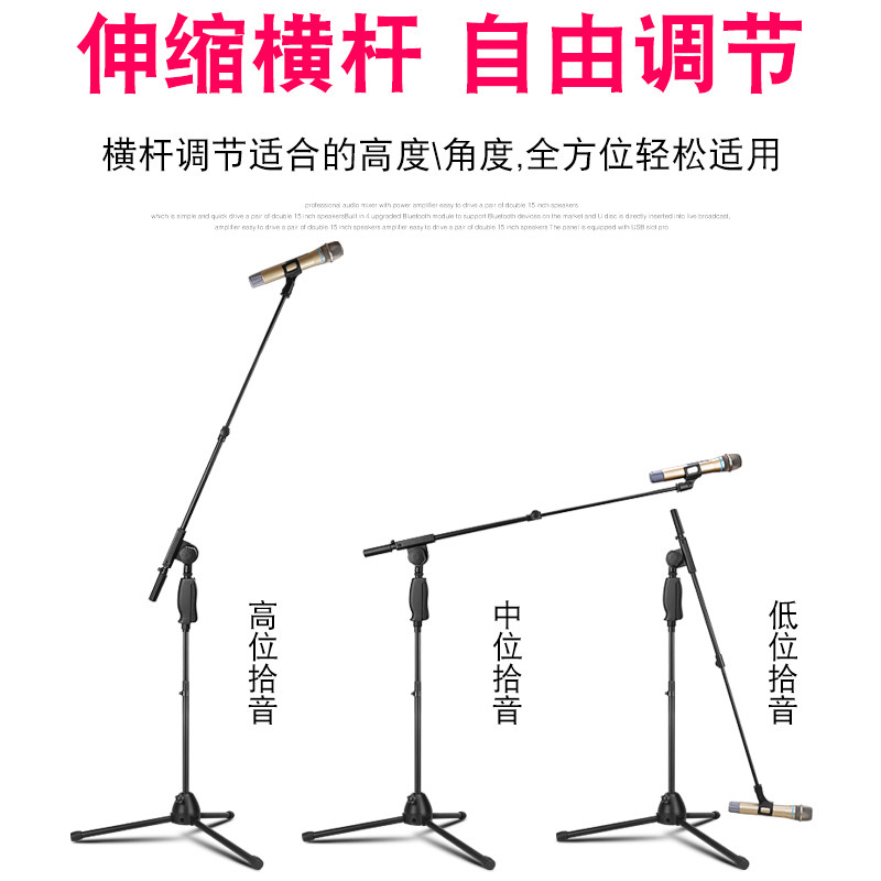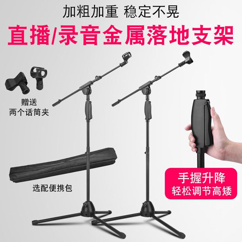 hoqinsen weighted microphone Microphone stand Floor-standing professional k singer machine live three-legged vertical one-piece bracket Press lifting frame Outdoor stage tripod Universal universal shelf