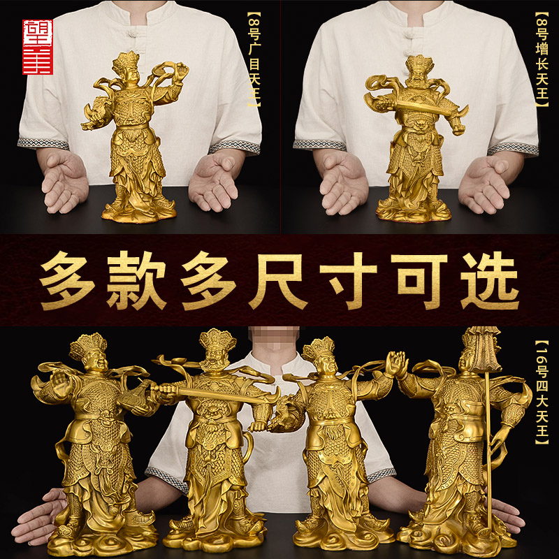 Brass four large king statues of the king statue of the four kings of the Buddha statue of the King, with a wide range of national hearing and growing the king's hair care large