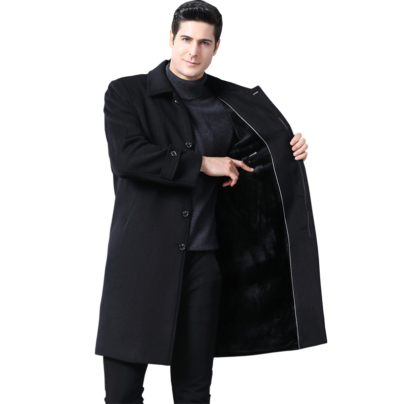 Long version cashmere coat men's winter thickening loose casual windbreaker middle-aged and elderly dad men's mid-length woolen