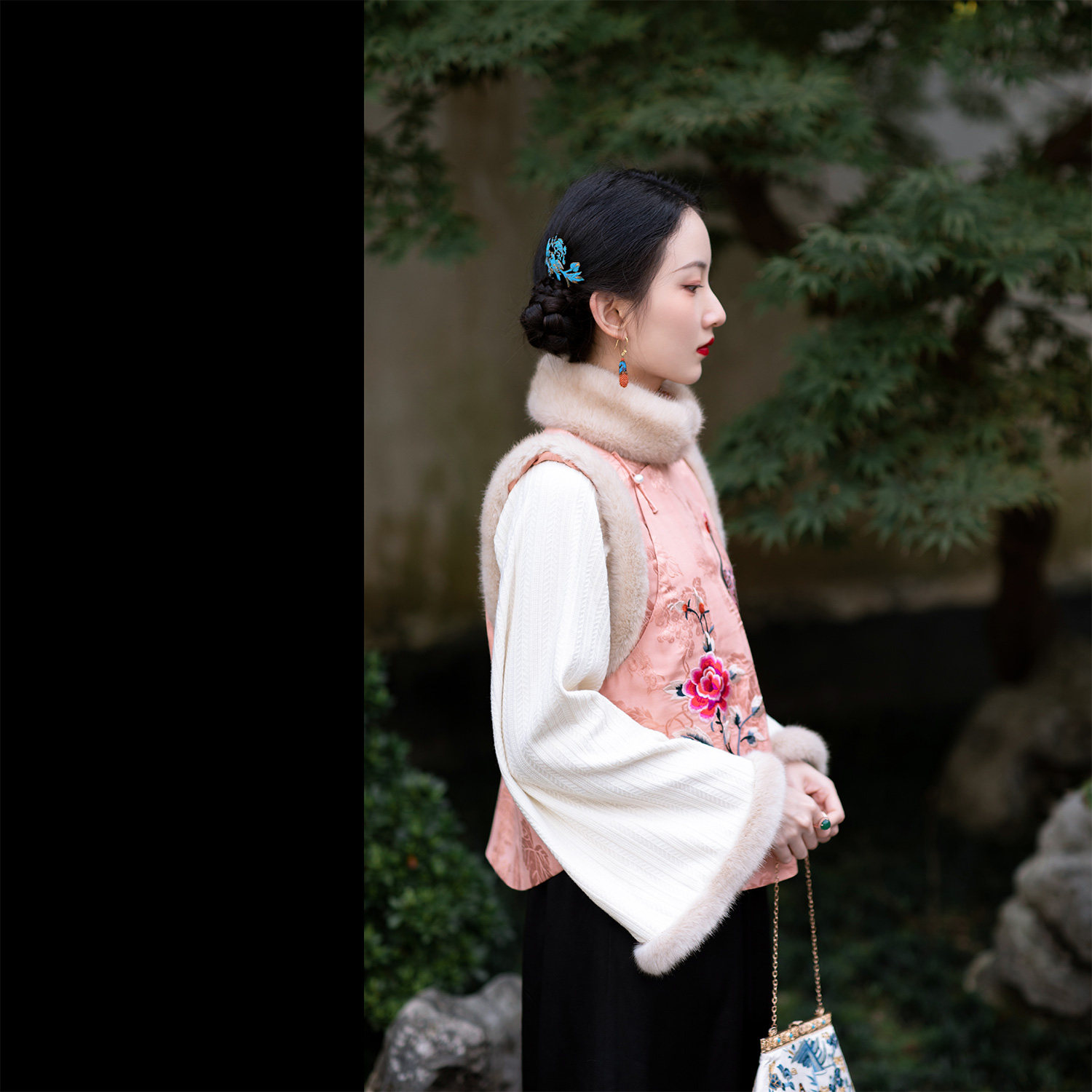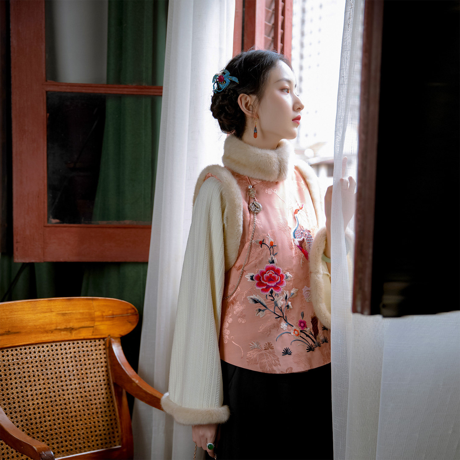 Binge drunkenness -- autumn and winter style retro-embroidered wool collar thickened jacket cotton padded jacket sweetened with Chinese style disc buckle blouses young