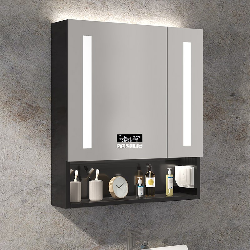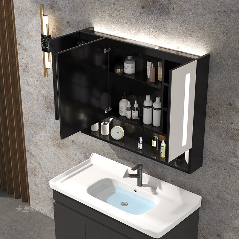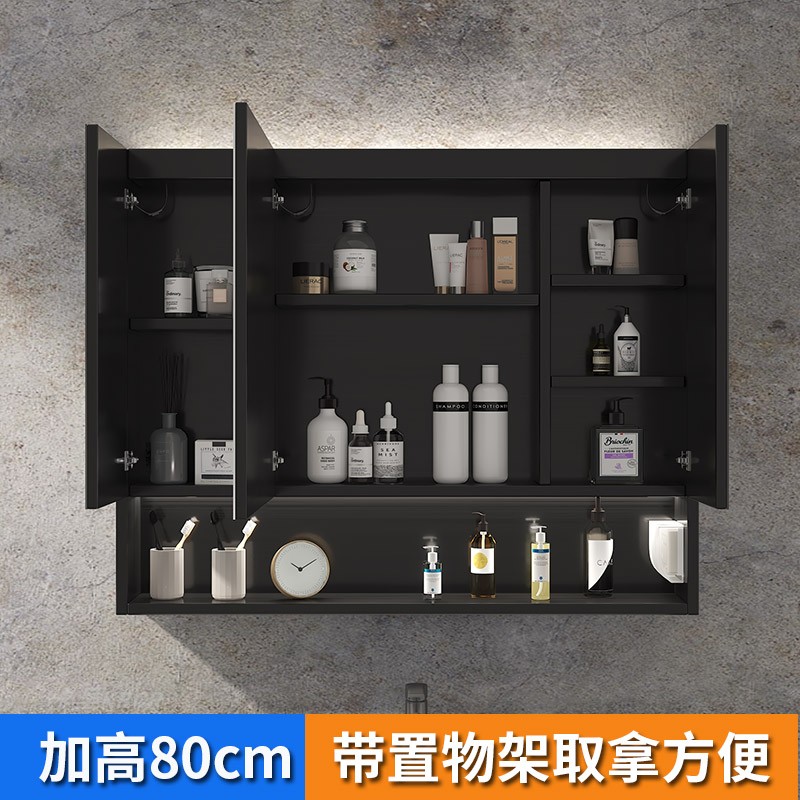 Black stainless steel bathroom mirror cabinet Wall-mounted smart bathroom with light Separate mirror box with shelf customization