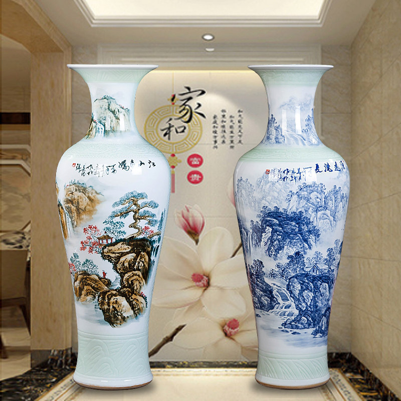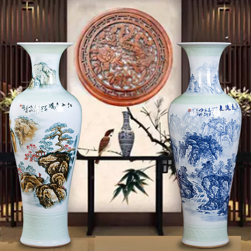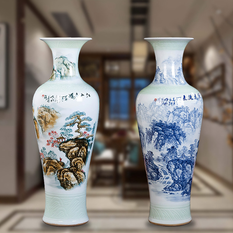 Jingdezhen Handpainted Jiangshan Multi-cuddling ceramic High vase Modern home Living room Xuanguan Decorative Pendulum Decorated With Flower Arrangement Porcelain Bottle