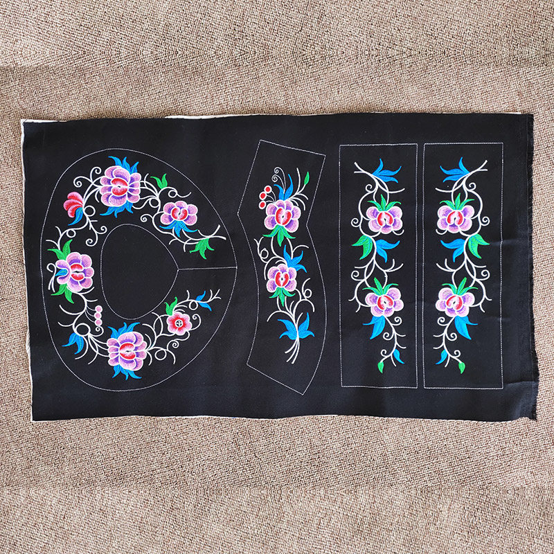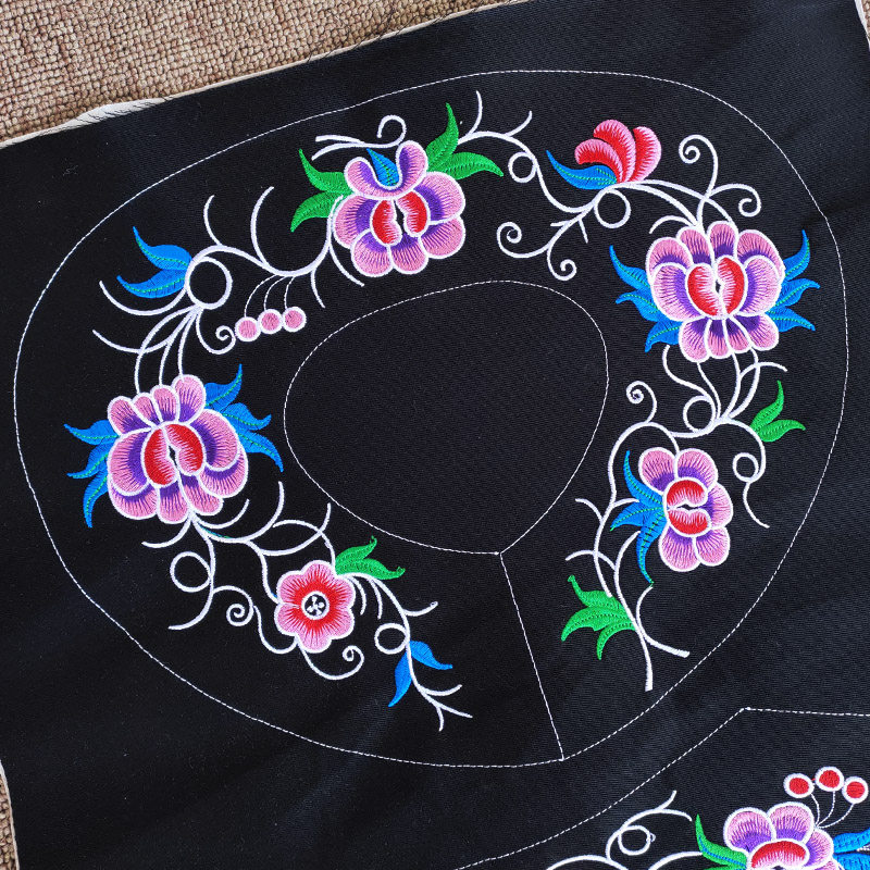 Guizhou Buyi China Wind lace cloth Ethnic Minority embroidered flower cloth Shoulder Collar National Wind Collar Flowers Black