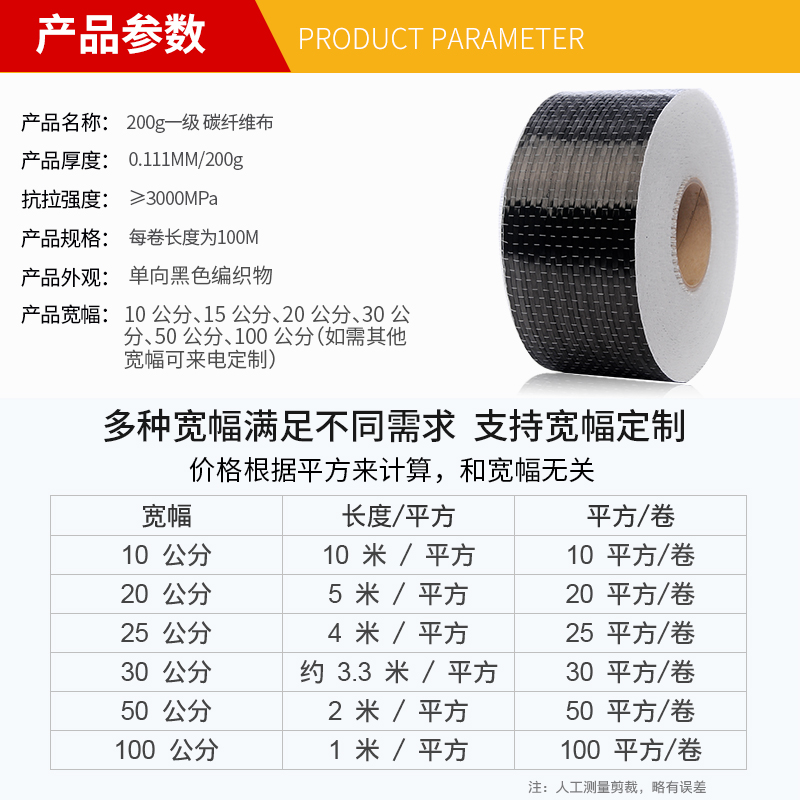 Carbon fiber 200g secondary building floor wall crack repair reinforced carbon fiber cloth