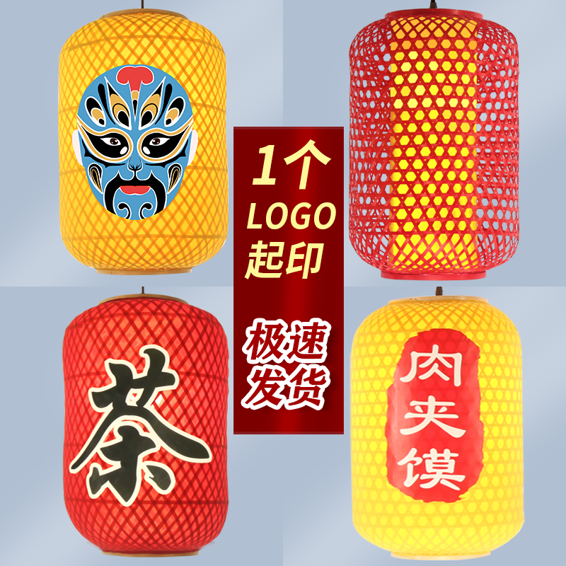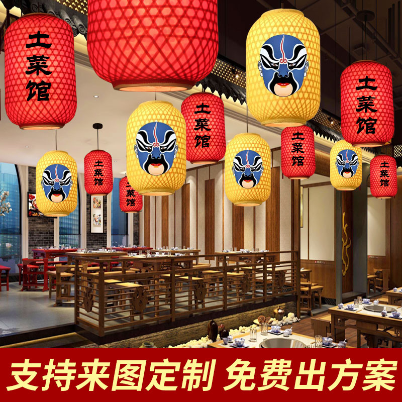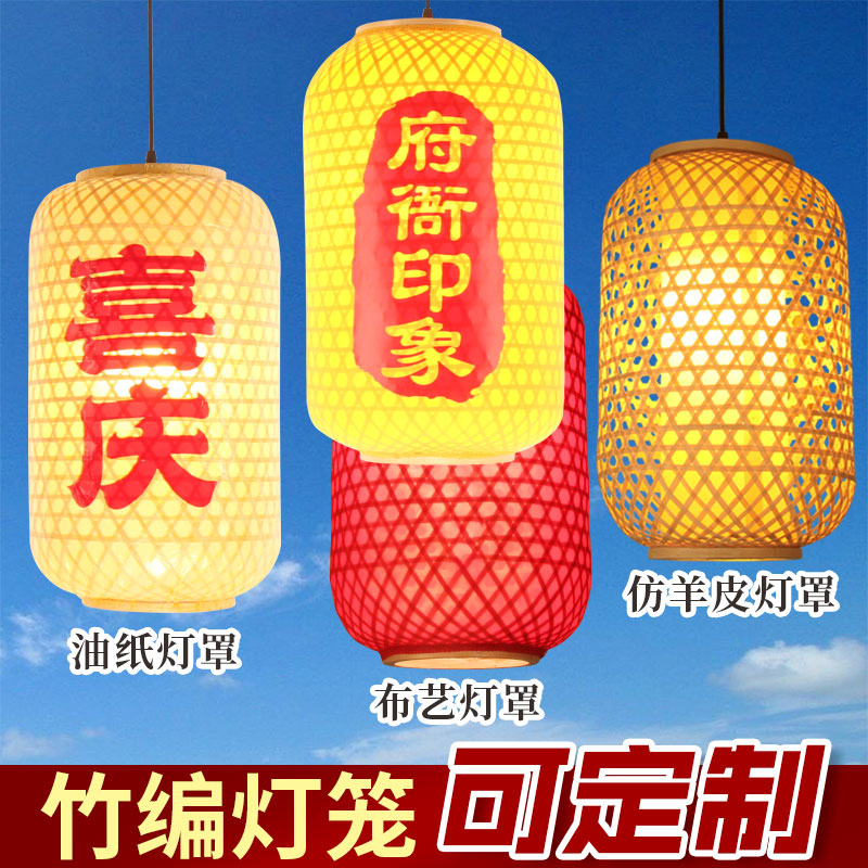 Bamboo woven lantern chandelier bamboo weaving lampshade custom logo printing word advertising antique hot pot tea house ancient style cover