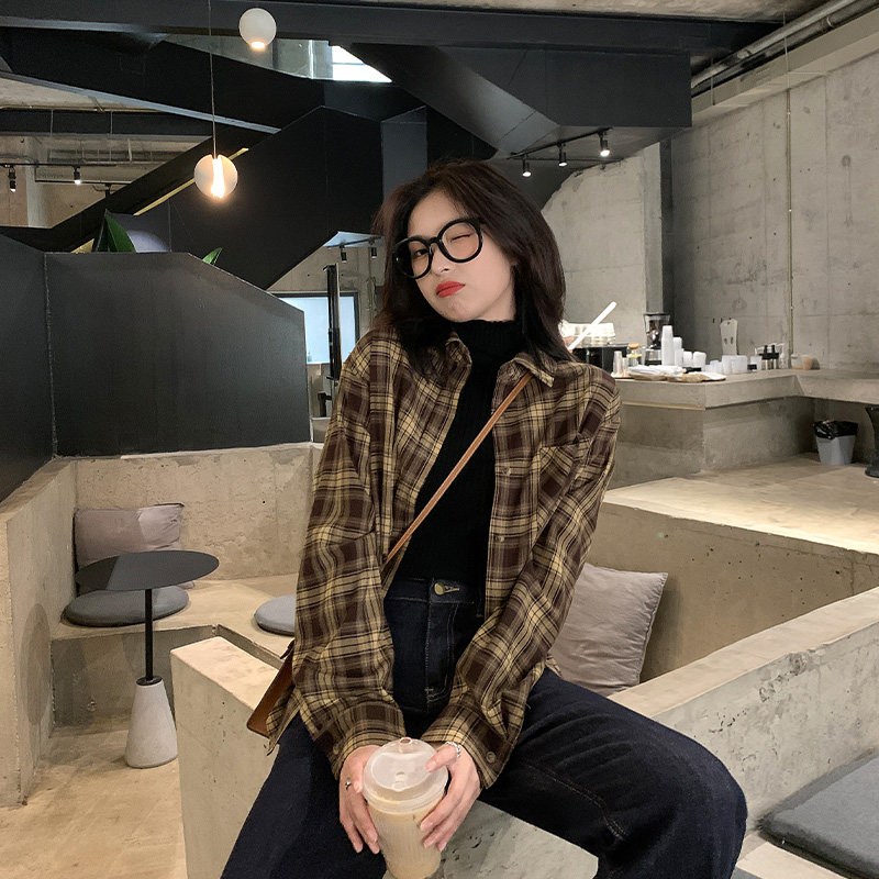 (TWO LEMON day not fall) 2022 mill Mao retro port Taste Plaid Shirt Woman Han Version Long Sleeve Jacket