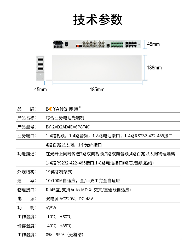 6 Phone 2 two-way video 2-way audio 4-way 100-megabit isolation network 8-way switch 4-way 485 single-fiber 20km rack 1-pair