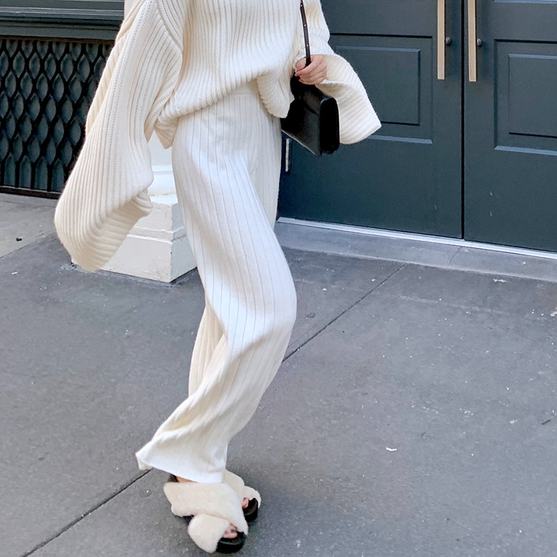 White knit broad legs female Winter sweater relaxed lazy wind half zipper high-collar sweater tide in