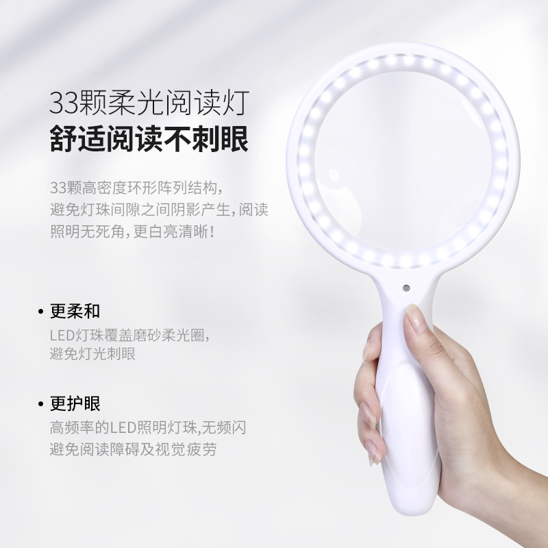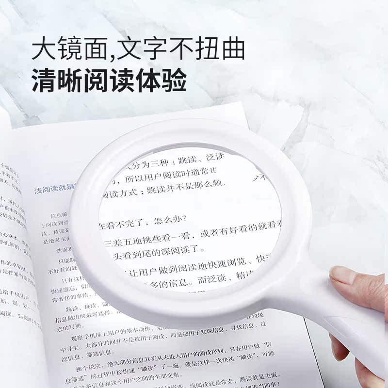 Le Yue holds a magnifying glass for the elderly Read the high-definition portable home magnifier with lamp charging older people read books