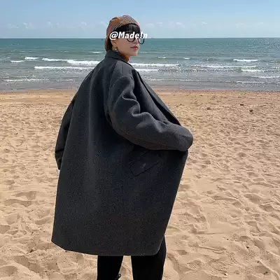 Spring and autumn 2021 New woolen coat men Korean version Loose medium and long version windbreaker trend student woolen coat